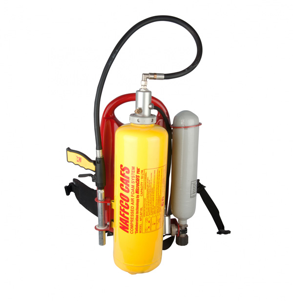 NAFFCO CAF hand held back pack has Special high energy foam, which has 20 times effective wetting ability than plain water using expansion technology. Long discharge range of foam up to 40 feet (12.2m) enabling the user to maintain a safe distance from smoke, flame or heat.