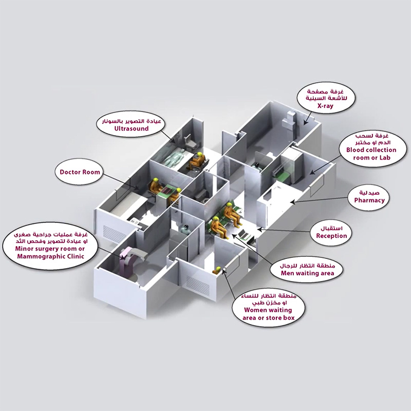 It can be a one sided or two sided expandable trailer with or without handicap lifter. This unit can be customized as per client’s requirement. It can be a fully-functional multi clinic or specialized unit to cater a specific needs. It can adopt various medical or surgical procedures & can be used as a building unit for mobile field hospitals or PHCC (Primary Health Care Center) OR ICU, CT & MRI , patients ward as a standalone or supporting existing hospital facilities.